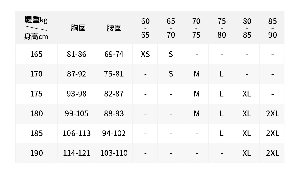 尺寸對照表